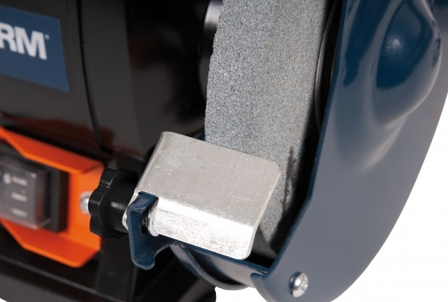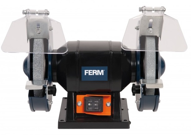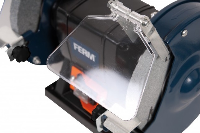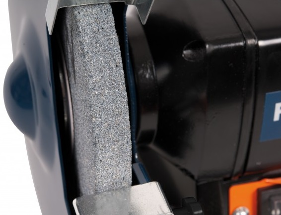 Semiprofessionele werkbankslijpmachine FSM150. Met vonkenvangers, glaasjes en instelbare steunen.