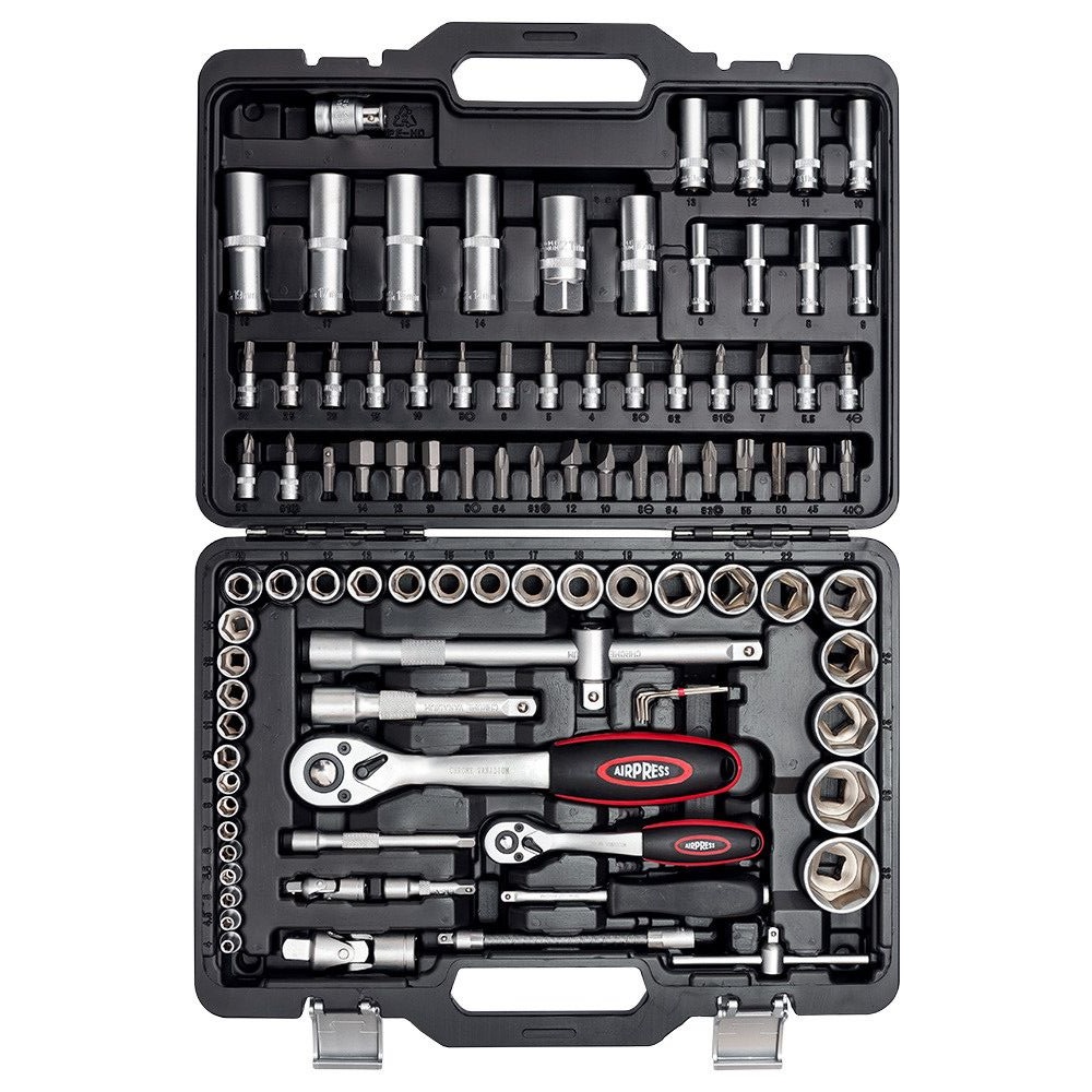 94 delige doppendoos met 1/4'' en 1/2'' aansluiting in koffer. Gemaakt van chroom-vanadium staal, wat zorgt voor hoge duurzaamheid en slijtvastheid.