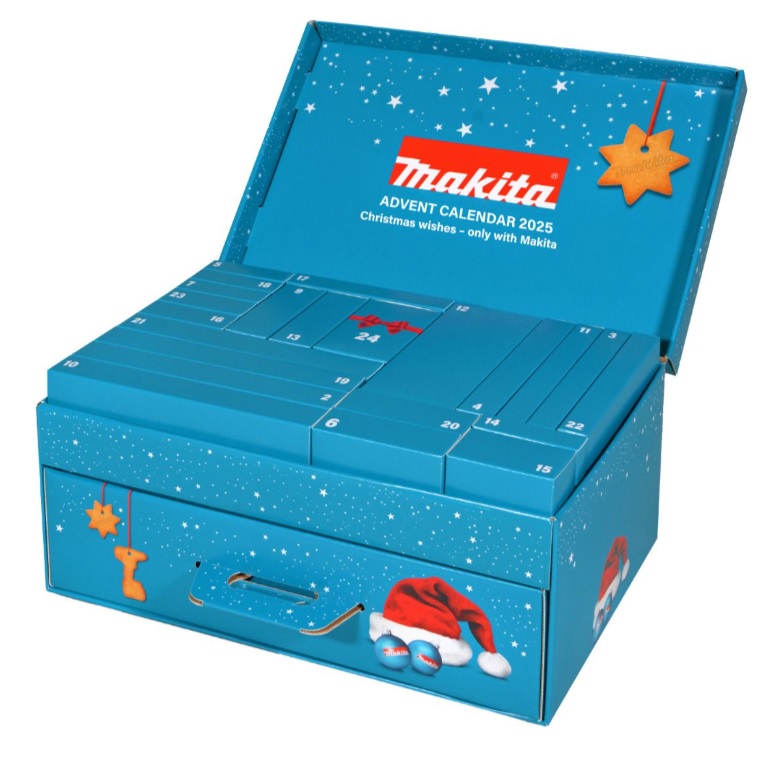 Deze adventskalender van MAKITA is een speciale adventskalender gericht op klusliefhebbers en Makita-fans. In plaats van chocolade of speelgoed bevat deze kalender gereedschap, bits, borensets en Makita‑merchandise.
