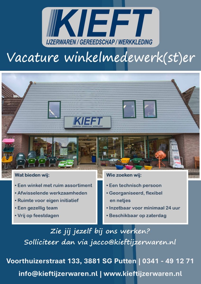 Zaterdag 28 juni was onze actiedag met demonstraties van Makita, acties van Herock, Altrex, Airpress, Spax en Ultraknee kniebescherming. Voor iedereen was er een gratis ijsje en de racesimulator was er ook weer. Bernard Duits heeft de prijs gewonnen met het racen op de racesimulator met een tijd van 1.29.255. In totaal hebben wij 30 prachtige kleurplaten terug gekregen en deze 4 zijn de winnaars geworden. De winnares van de slagzin is Lisette Oudshoorn, zij bedacht de slagzin: Ik ga graag naar Kieft ''omdat je er heerlijk rond kunt struinen, of het om een deurstopper of zaaggereedschap gaat, je krijgt er altijd service op maat en dat alles in het prachtige Huinen''.