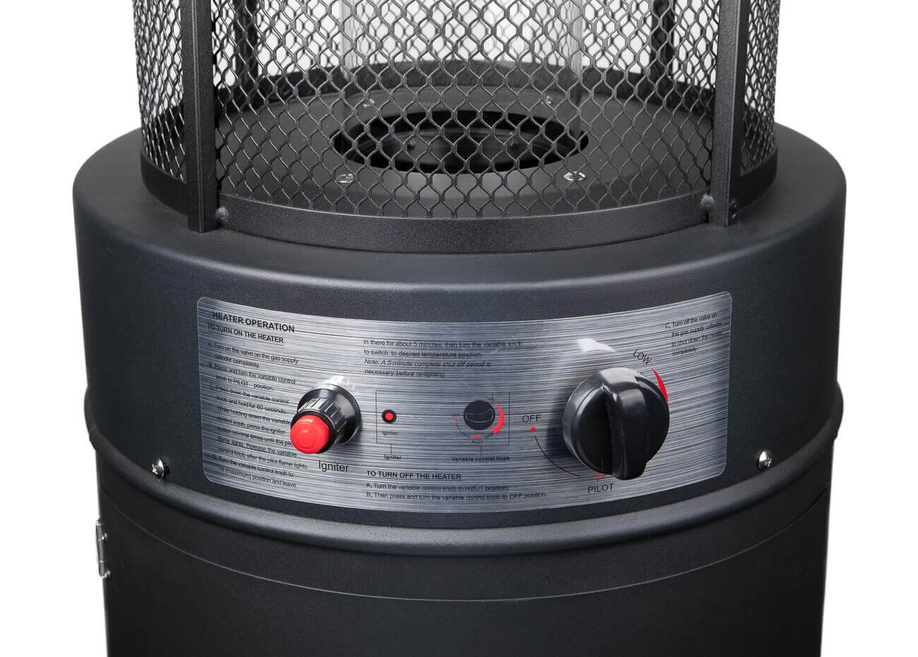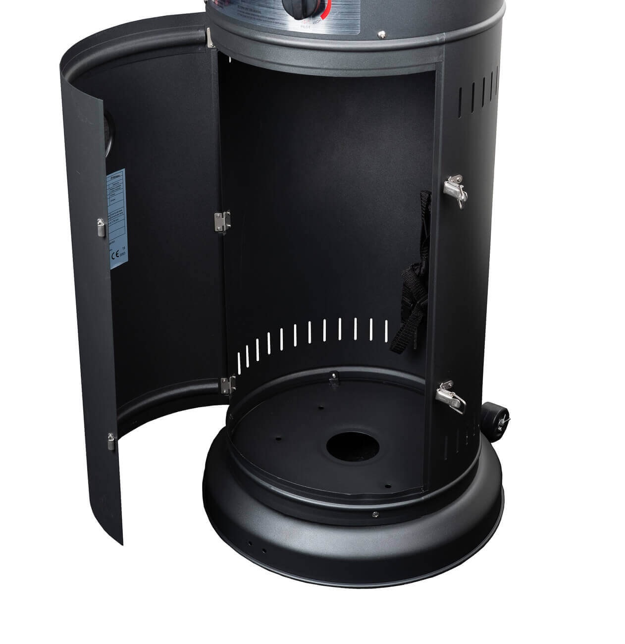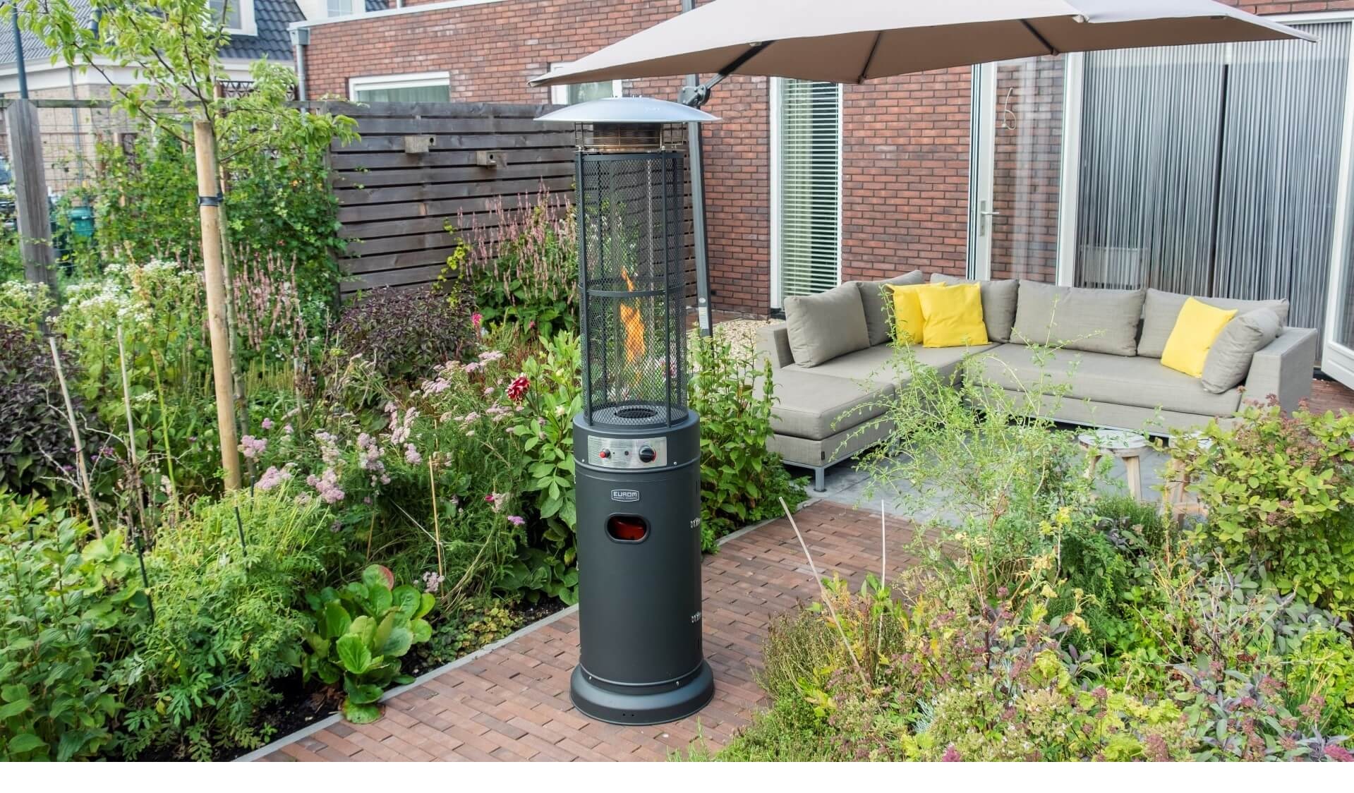 Zwarte, krachtige terrasverwarmer met variabele gascontrole. Met 11000 Watt aan vermogen zal deze gasheater het terras op een heerlijke temperatuur krijgen.