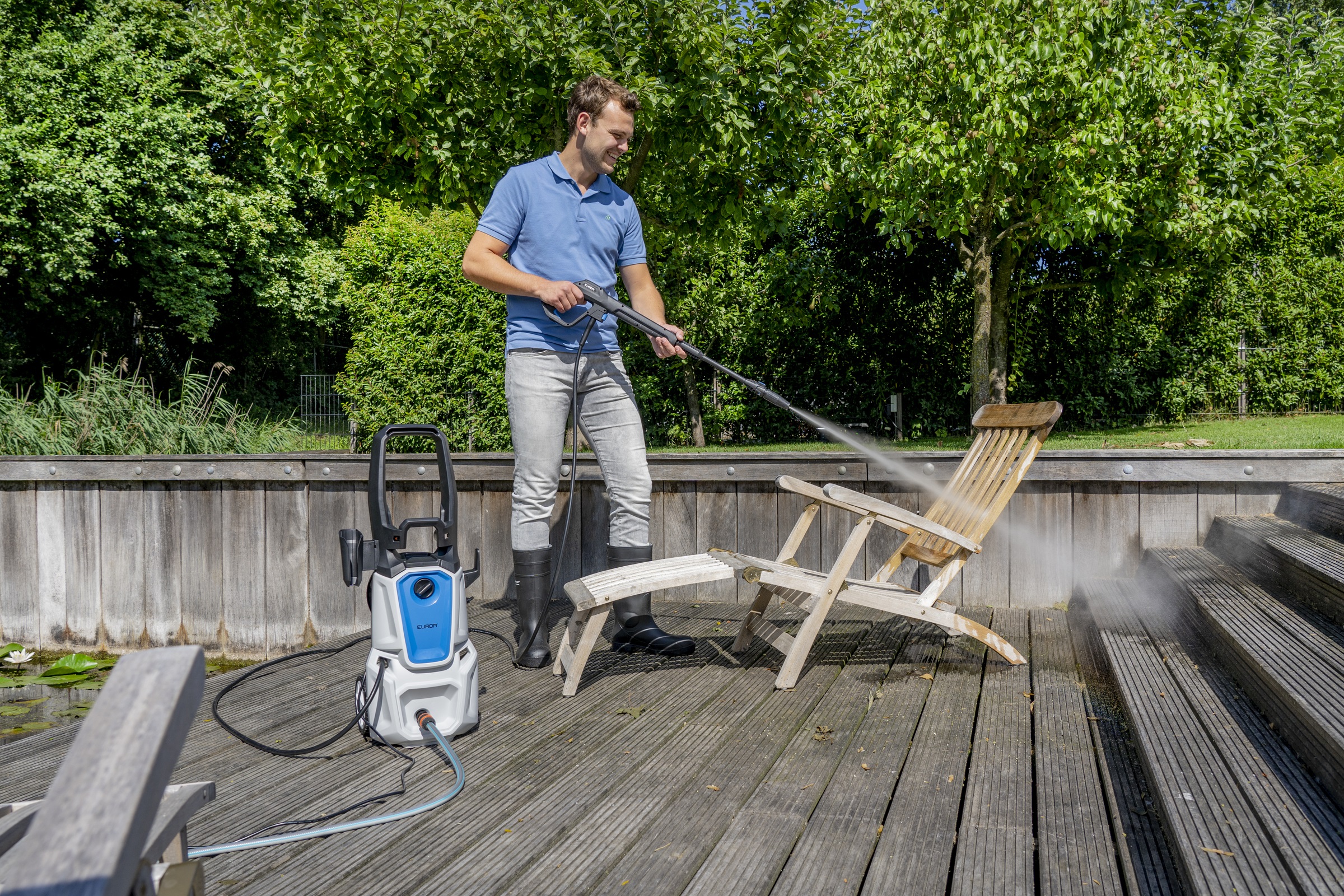 Accessoires inclusief: punt-/vlakstraalnozzle, roterende vuilfrees en terrasreiniger
